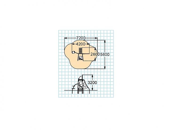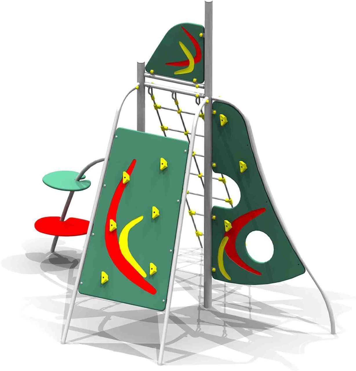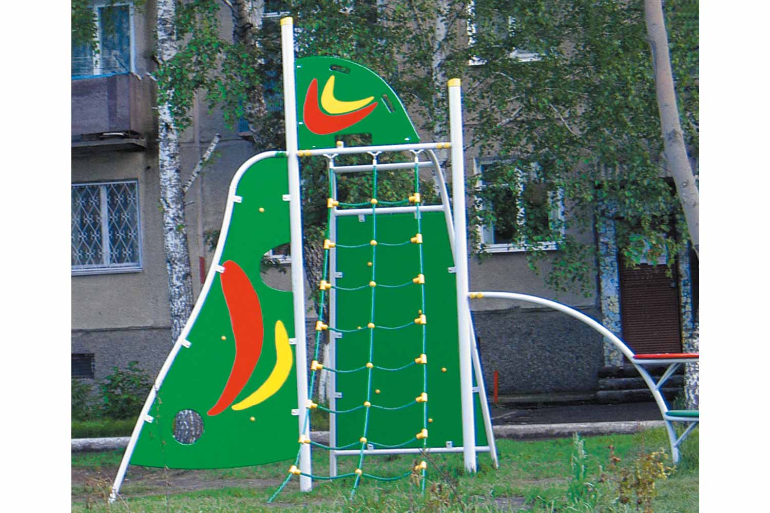 В составе комплекса: столб, 2 альпинистские стенки с зацепами, дуга со ступенями, дугообразная лестница, полипропиленовая сетка.