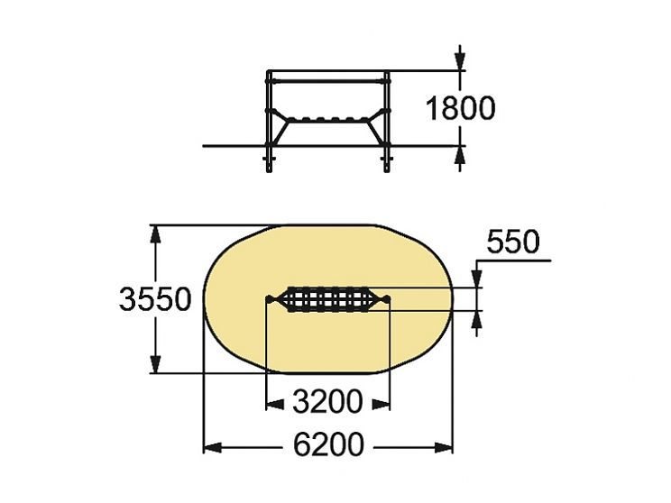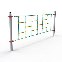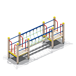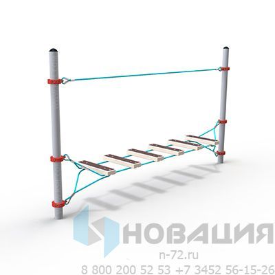 Мостик состоит из полиамидного или пропиленового каната и нескользящих деревянных ступеней. Конструкция закрепляется между 2-мя несущими стойками.