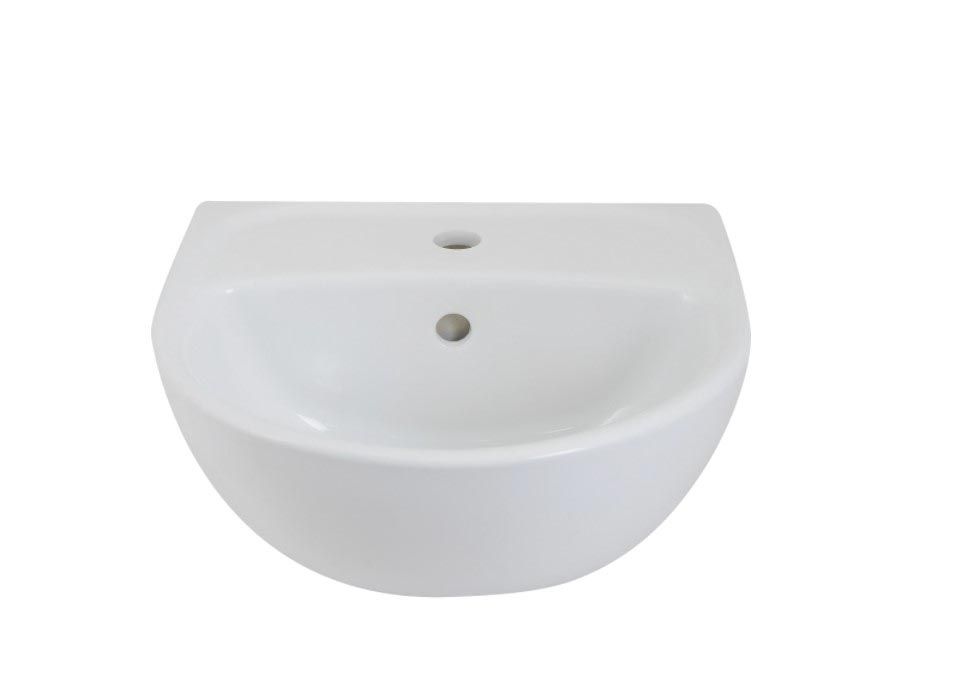 - раковина (подвесная овальная, ДхШ 495х415 мм, глубина чаши-210 мм, вес 12 кг, фарфор).