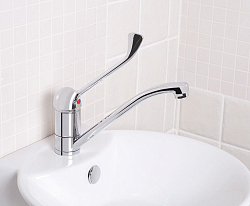 - смеситель (однорычажный хромированный, ширина 50 мм, излив 87х44 мм, высота 90 мм, вес 0.445 кг; цинк, пластик, с керамическим картриджем (35 мм)),