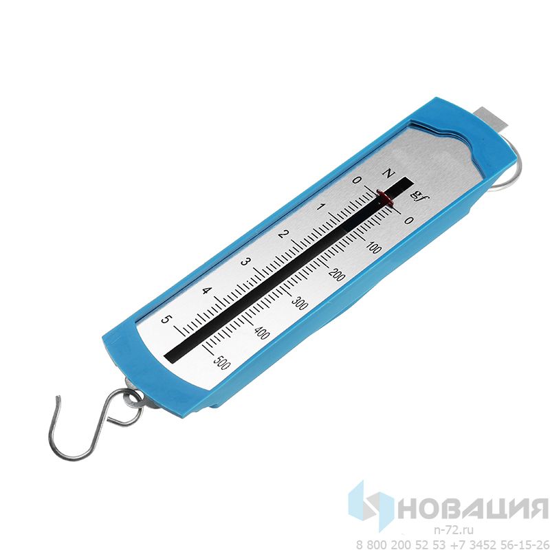 Назначение: изучение сложения и разложения сил, равновесия тел на наклонной плоскости, законов трения. Устройство измеряет нагрузку в ньютонах и граммах. На корпус из пластмассы нанесена двойная шкала. Грузы подвешиваются к металлическому крючку в нижней части динамометра. Кольцо сверху удерживает прибор.