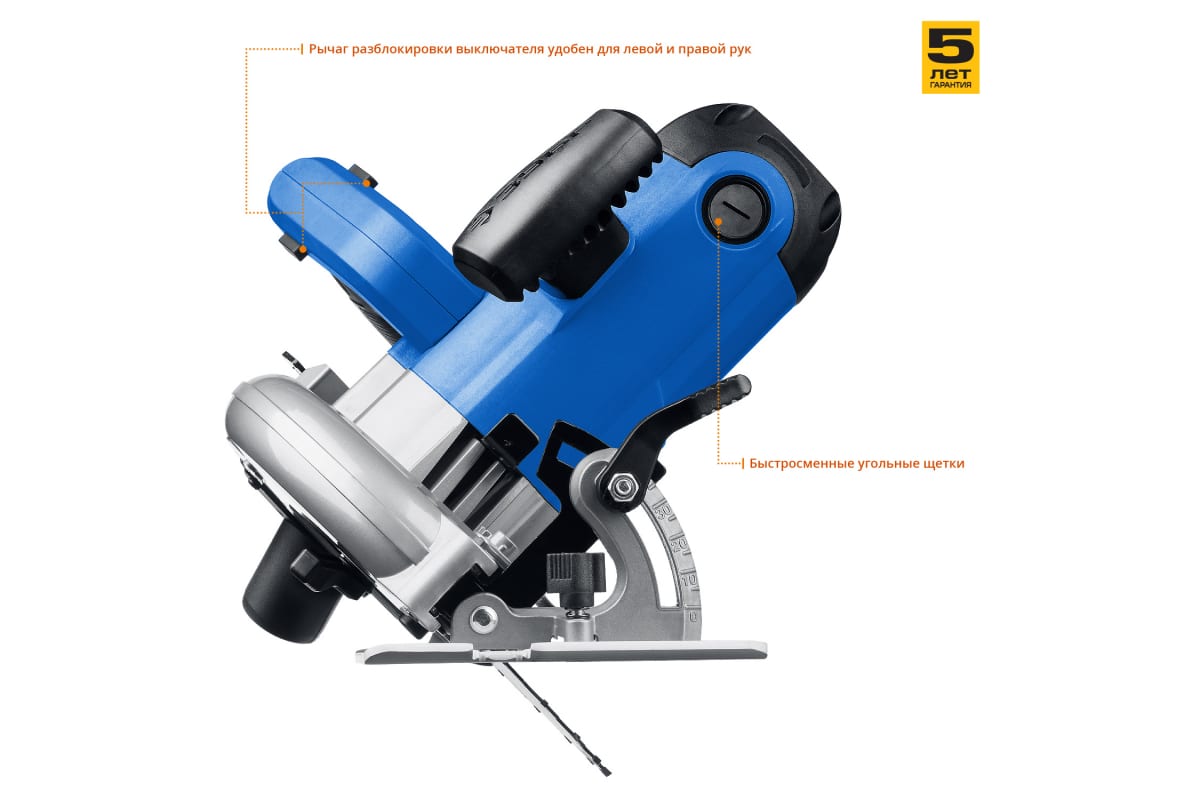 Диск и щетки сменные. Рычаг блокировки переключателя настроен под правый и левый хват, есть дополнительная рукоятка. Защитный кожух позволяет избегать травм. Во время работы ключ фиксируется держателем. Жесткое основание конструкции помогает точно делить заготовку. При необходимости к инструменту подключается пылесос.