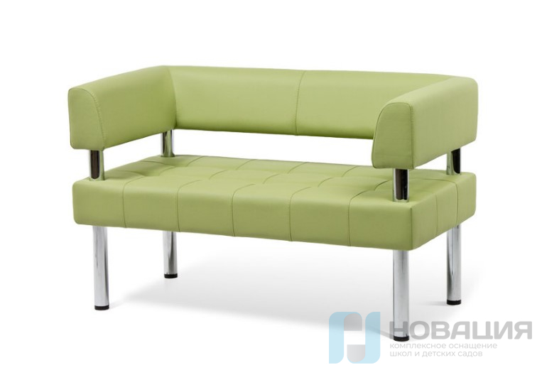 Двухместный диван с прямоугольным сиденьем оснащен спинкой и 2-мя подлокотниками. Поверхность сиденья, подлокотников и спинки легко очищается влажной тканью.