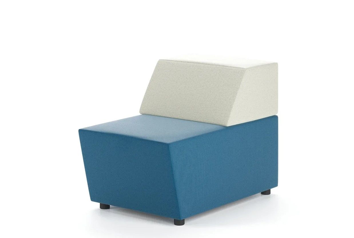 Диван состоит из верхнего и нижнего элементов, грани которых имеют форму трапеций и прямоугольников. Каркас опирается на 4 ножки. Сиденье и спинка покрыты экокожей. Стойкость к истиранию: не менее 50000 циклов. Изделие сочетается с другими моделями линейки, возможно составление произвольных композиции без острых углов.