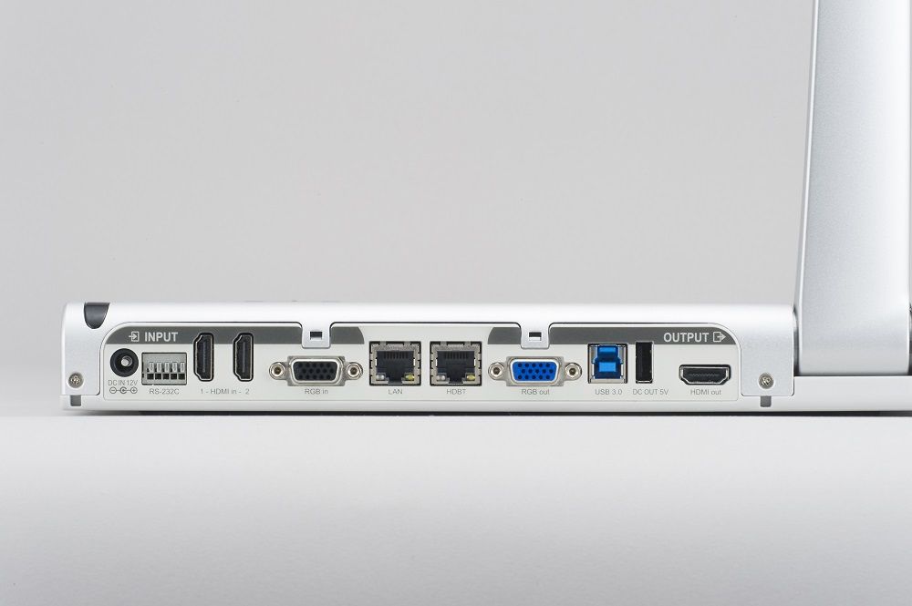 HDMI (Type A, Version 1.4) IN x2 / OUT x1,RGB IN/OUT x1, USB (Type A, Version 2.0) x2, USB (Type B, Version 3.0) x1, HD Base T x1, LAN x1 (WOL), RS-232C x1, AUDIO OUT x1, Mic IN x1,SD Slot |