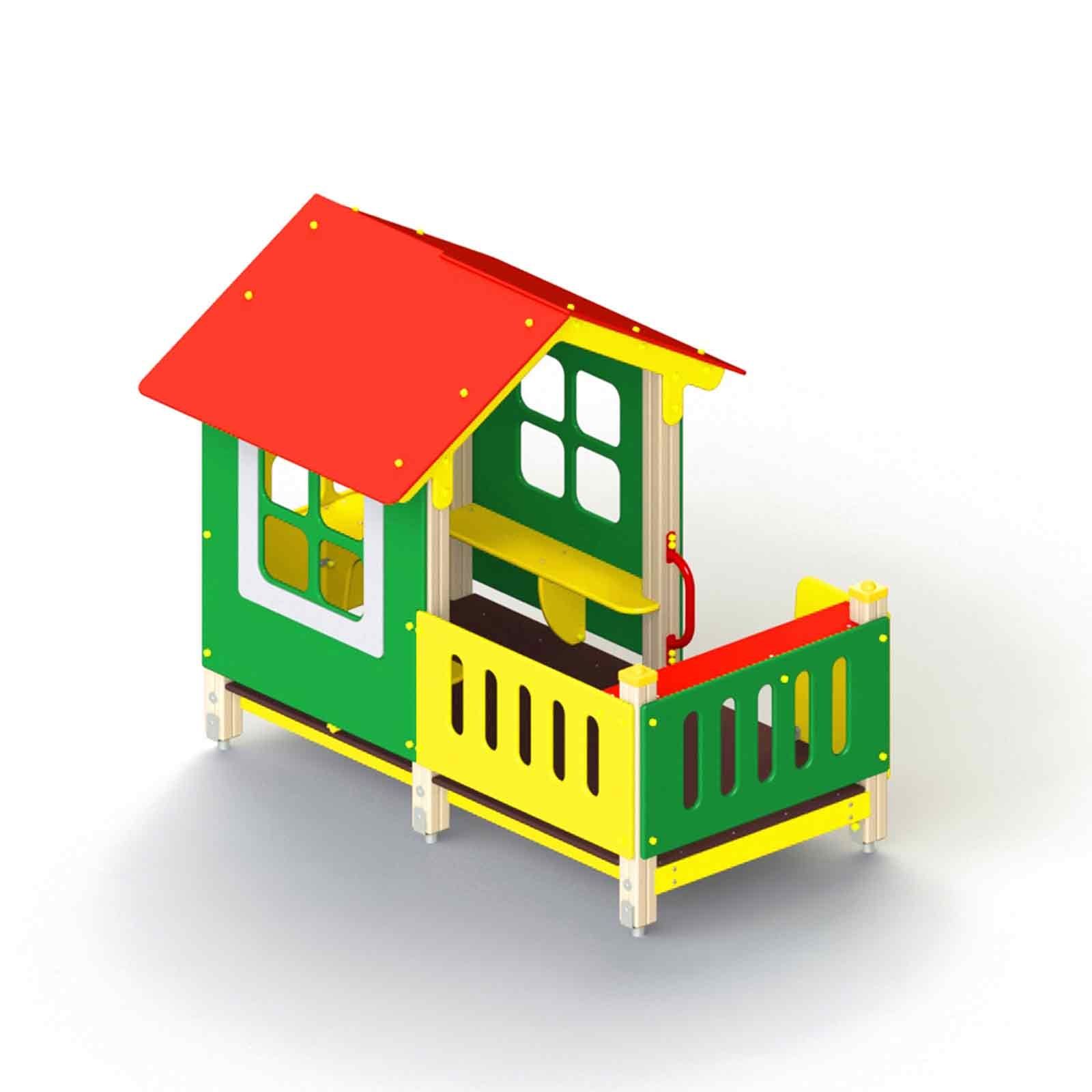 Игровой домик с ограждением устанавливается на уличной площадке ДОУ.