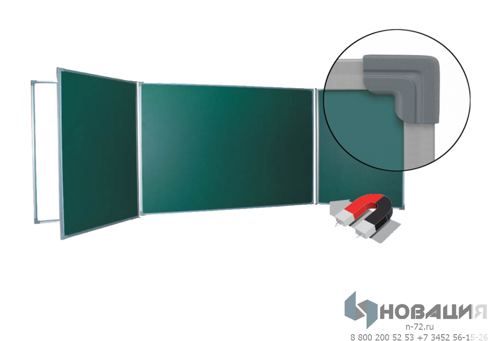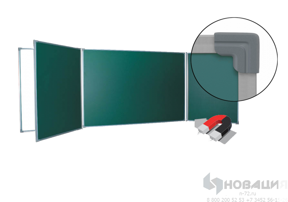 5-элементная классная доска используется в кабинетах школ. Конструкция состоит из 7-ми рабочих поверхностей.