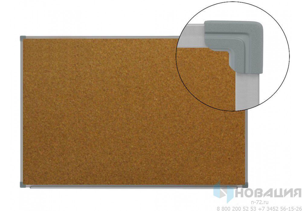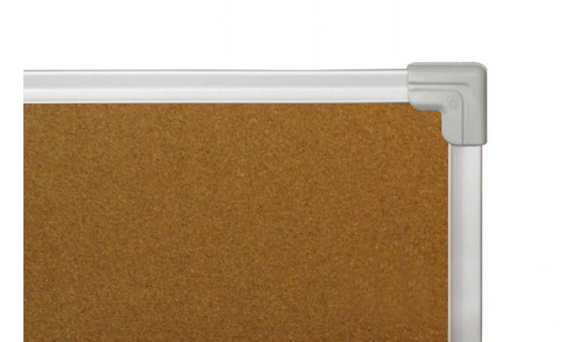 Прямоугольное пробковое поле обрамляется профилем из металла. Закругленные углы прикрываются пластиковыми заглушками.