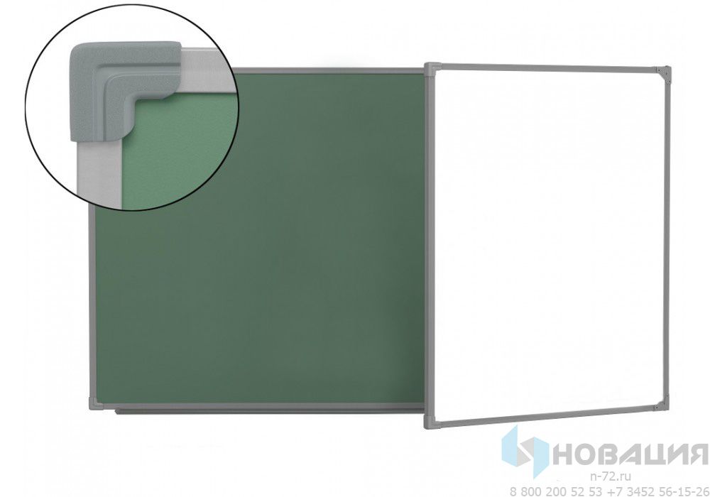 2-элементная классная доска устанавливается на стене в кабинете школы. Конструкция состоит из 3-х рабочих поверхностей.