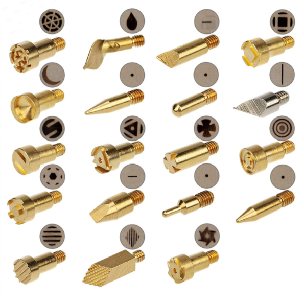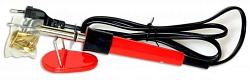 Выжигатель подключается к электрической сети. Универсальный инструмент работает в 2-х режимах, нагревается до 400-450°C. В наборе предусмотрена подставка с отгибающимся элементом для фиксации паяльника. Сменные насадки различных форм закрепляются при помощи винта, после эксплуатации быстро снимаются. Жалом удобно паять дорожки на платах и провода. Для нарезания подходит острая насадка-нож.