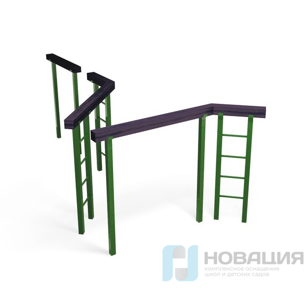 Спортивное оборудование бетонируется на глубину 700 мм или без заглубления в грунт фиксируется на специальном уличном покрытии. Установка предназначена для тренировки равновесия, силы рук, ног и пресса.