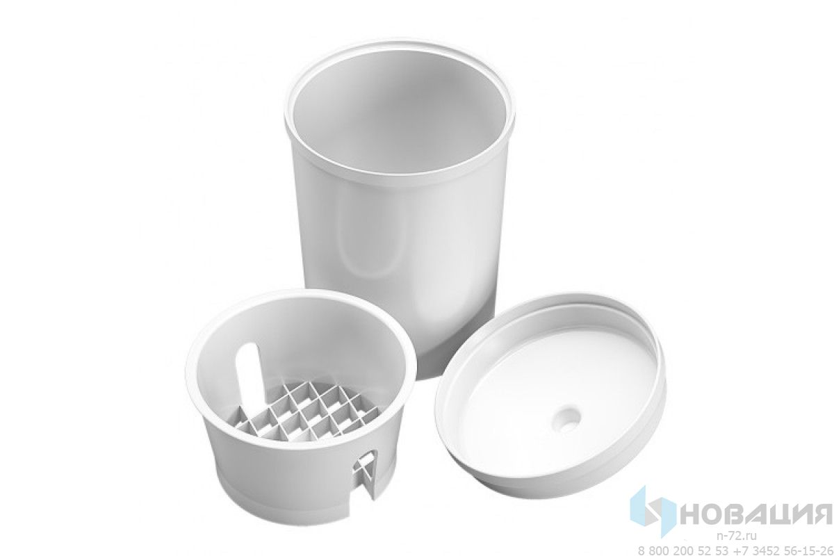 Компактная емкость состоит из корпуса, крышки и вкладыша из 22-х ячеек для размещения термометров.