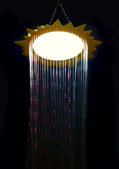 Фибероптический душ "Солнышко" имеет оригинальный дизайн, основание выполнено в виде светящегося солнышка с ярко-желтыми лучами. В лучики выведены светящиеся нити.