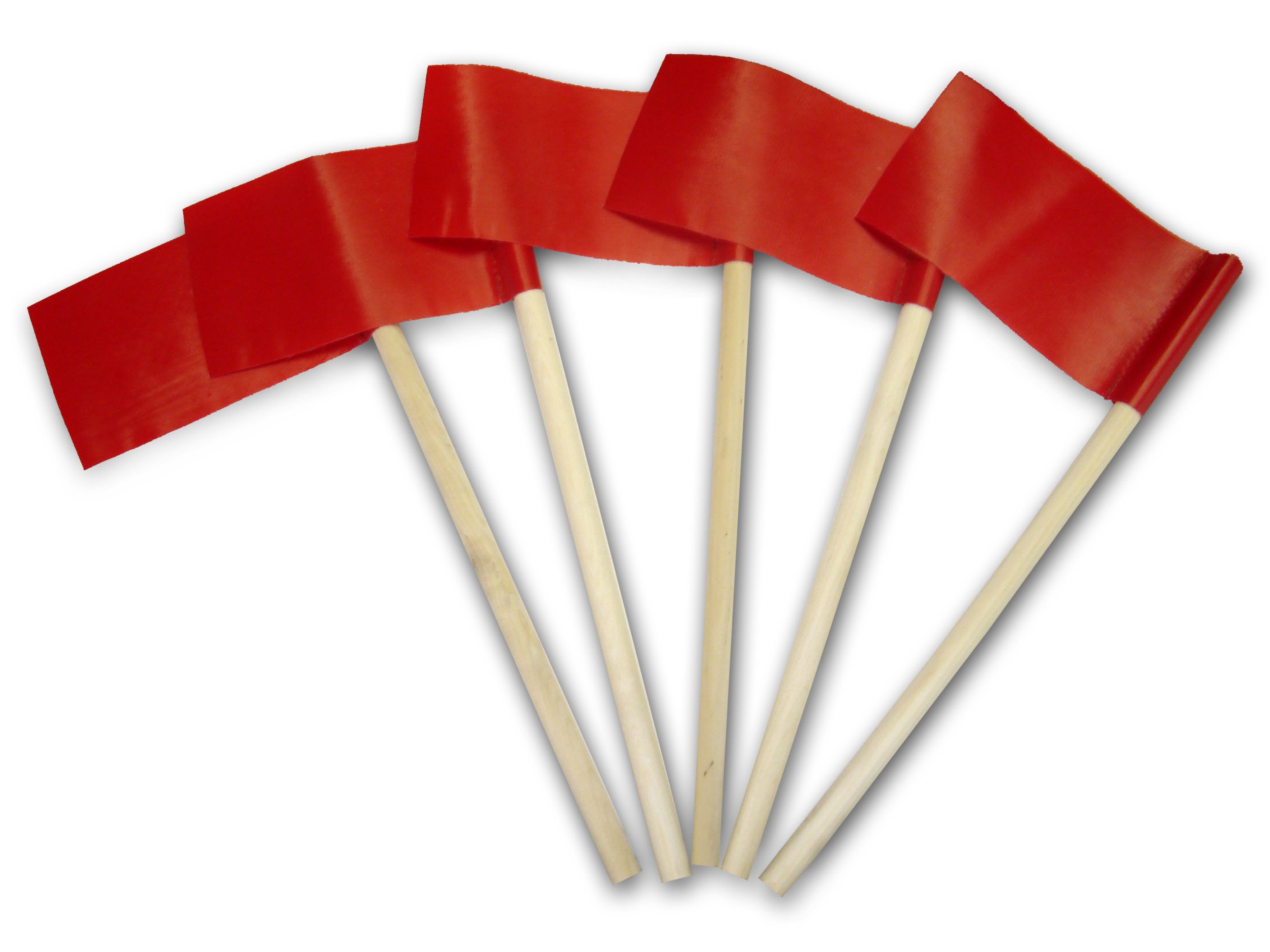 Яркое прямоугольное полотно флажка фиксируется на деревянном колышке. Одноцветная тентовая ткань заметна издалека, не боится воздействия ветра.