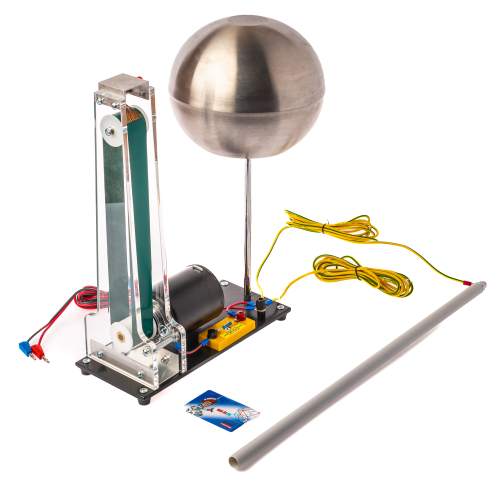 - Заряжаемая до высокого напряжения металлическая сфера (съемная, для демонстрации устройства генератора Ван-де-Граафа);