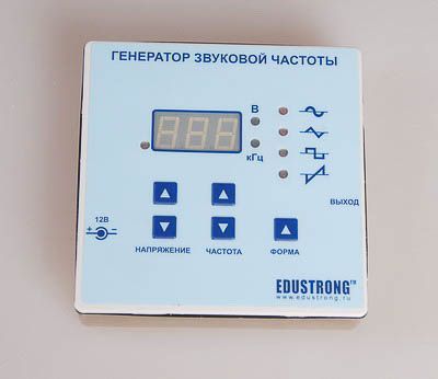Это генератор с прямым синтезом частот. Сигнал получается точным и стабильным. Устройство программируется, оснащено микропроцессором. Есть цифровой индикатор частоты и амплитуды.