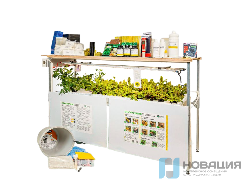 Компактная конструкция позволяет регулировать высоту расположения, обеспечивая удобный доступ детям всех возрастов. Оснащена системой автоматического полива и имеет два метода культивации (периодическое подтопление и выращивание методом тонкого слоя), установка дает идеальные условия для быстрого освоения агротехнологий.
