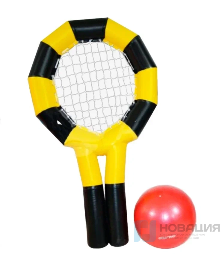 Размеры: d мяча 650-750 мм, d ручки ракетки 200 мм, высота ракетки 2000 мм.