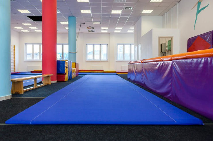 Дорожка для гимнастических упражнений в школьном спортзале выполнена из материалов разной степени жесткости. Плотность ткани 600 гр/м2. Чехол съемный, на застежке-молнии, цвет черный или синий.