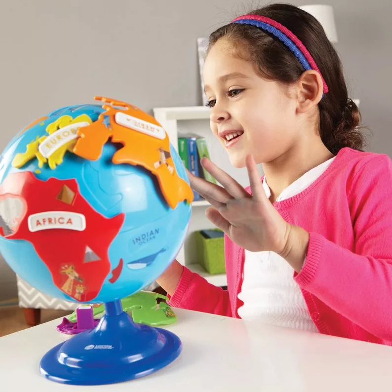 Занятия с глобусом позволяют визуально изучить, как устроена наша планета и запомнить названия всех континентов, способствуют расширению кругозора и развитию мелкой моторики.