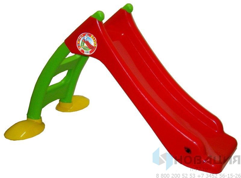 Пластиковая горка для детей дошкольного возраста может использоваться в детском саду. Подходит для улицы и помещения, легко собирается и переставляется. Изготовлена из прочного и безвредного для здоровья материала; оснащена удобной лестницей с противоскользящими ступенями.