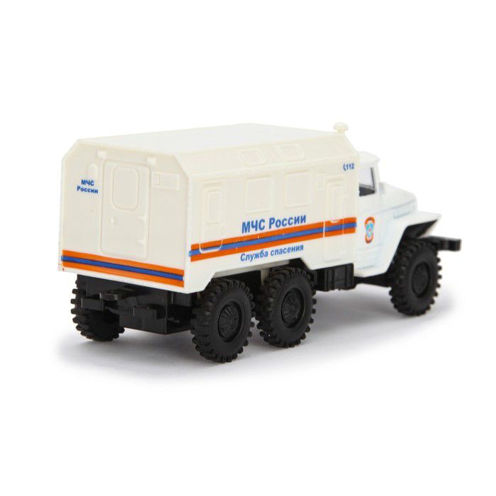 Модель грузовика выполнена в масштабе 1:48. Корпус стилизован под оформление транспорта МЧС. Машинка задействуется в сюжетах игр, служит иллюстрацией для занятий на тему безопасности.