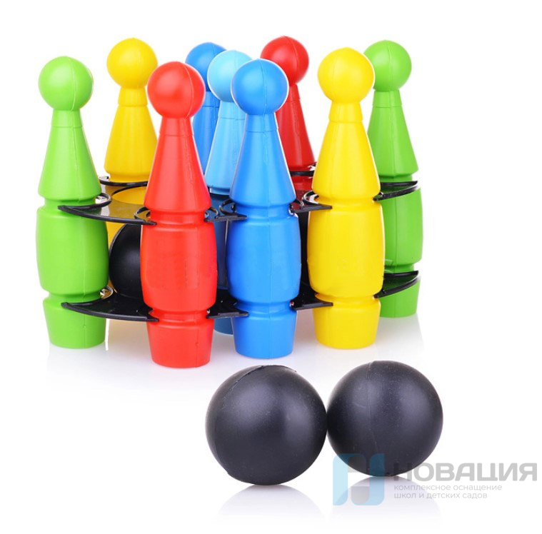 В комплекте: 6 кеглей и 2 шара.