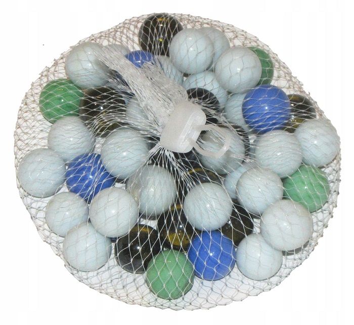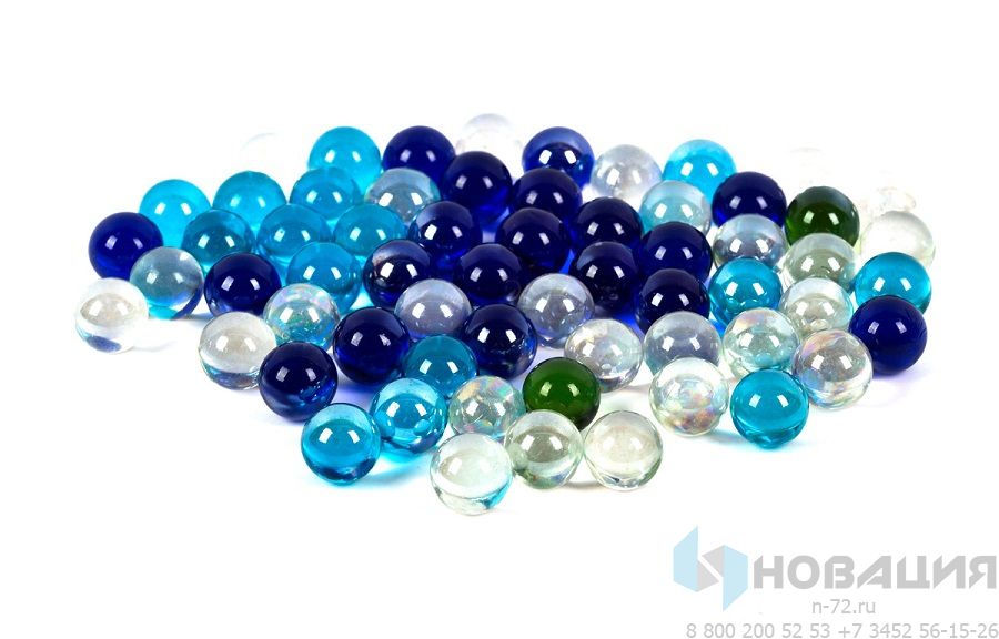 Набор небольших шариков из разноцветного стекла поставляется в мешочке, сопровождаемом рекомендациями по использованию.