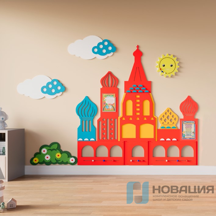 - Миди, размеры (ШхВ) - 2600х2000 мм, в комплекте - элемент “Кремль”, элемент “Облако” (2 шт.), элемент “Дерево”;