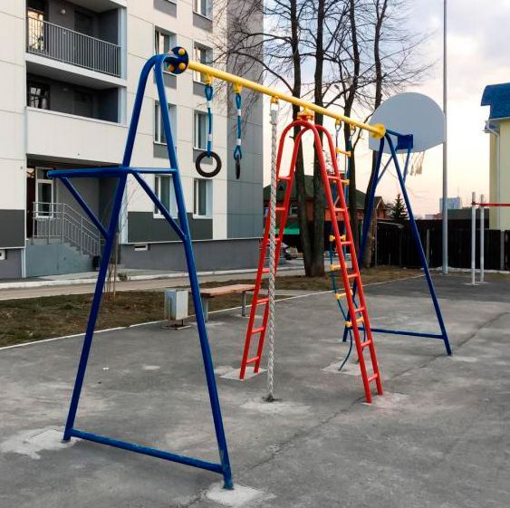 - лестница для лазания: наклонные стойки, дугообразные вставки, ступеньки-трубы (d 33 мм),