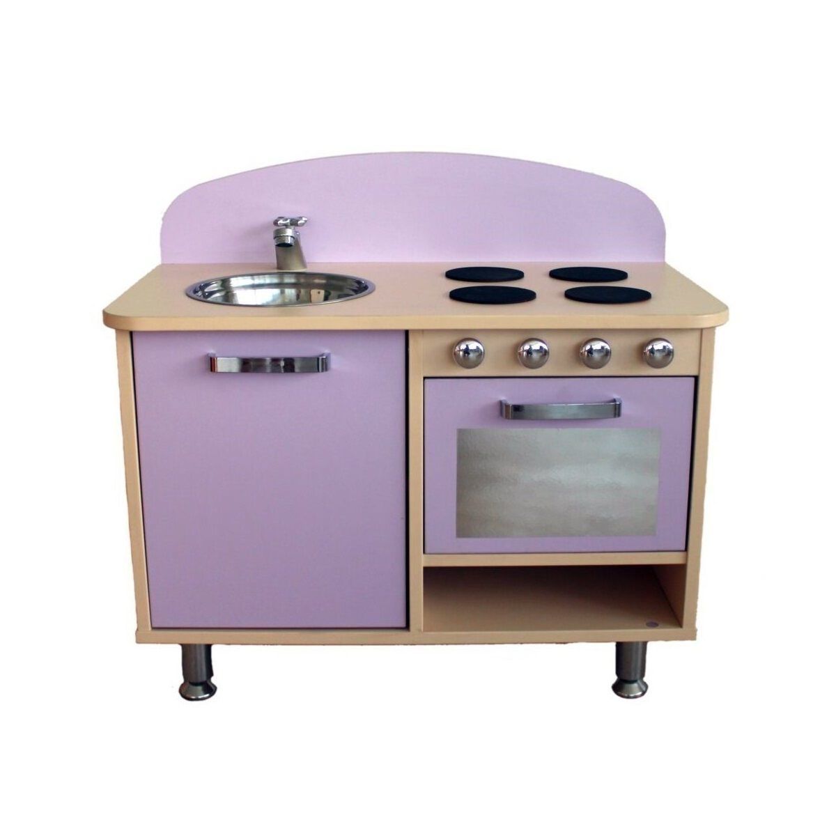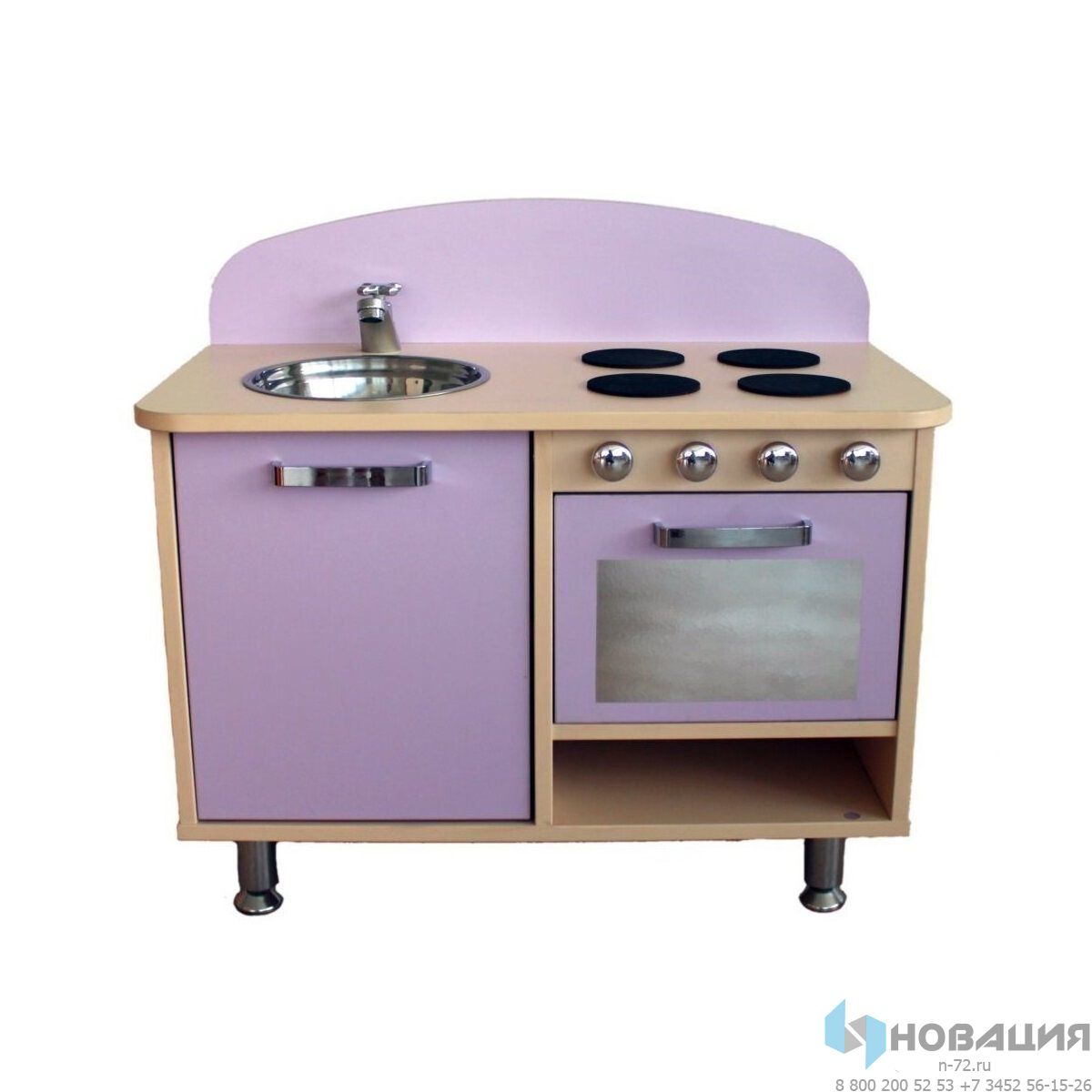 Игровая зона на 4-х металлических опорах представлена 2-мя закрытыми боксами, имитирующими духовку и кухонную тумбу, мойку со смесителем, имитацией конфорок, открытой нишей.