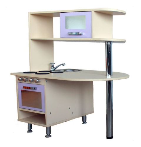 Игровая мебель для ДОУ стоит на 4-х опорах, представлена 2-мя нишами и 3-мя закрытыми боксами. Зона для сюжетно-ролевой игры позволяет воссоздать обстановку кухни с мойкой и смесителем, конфорками, духовкой.