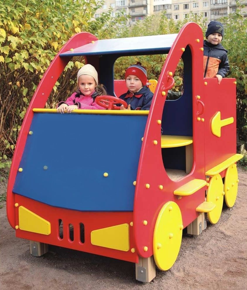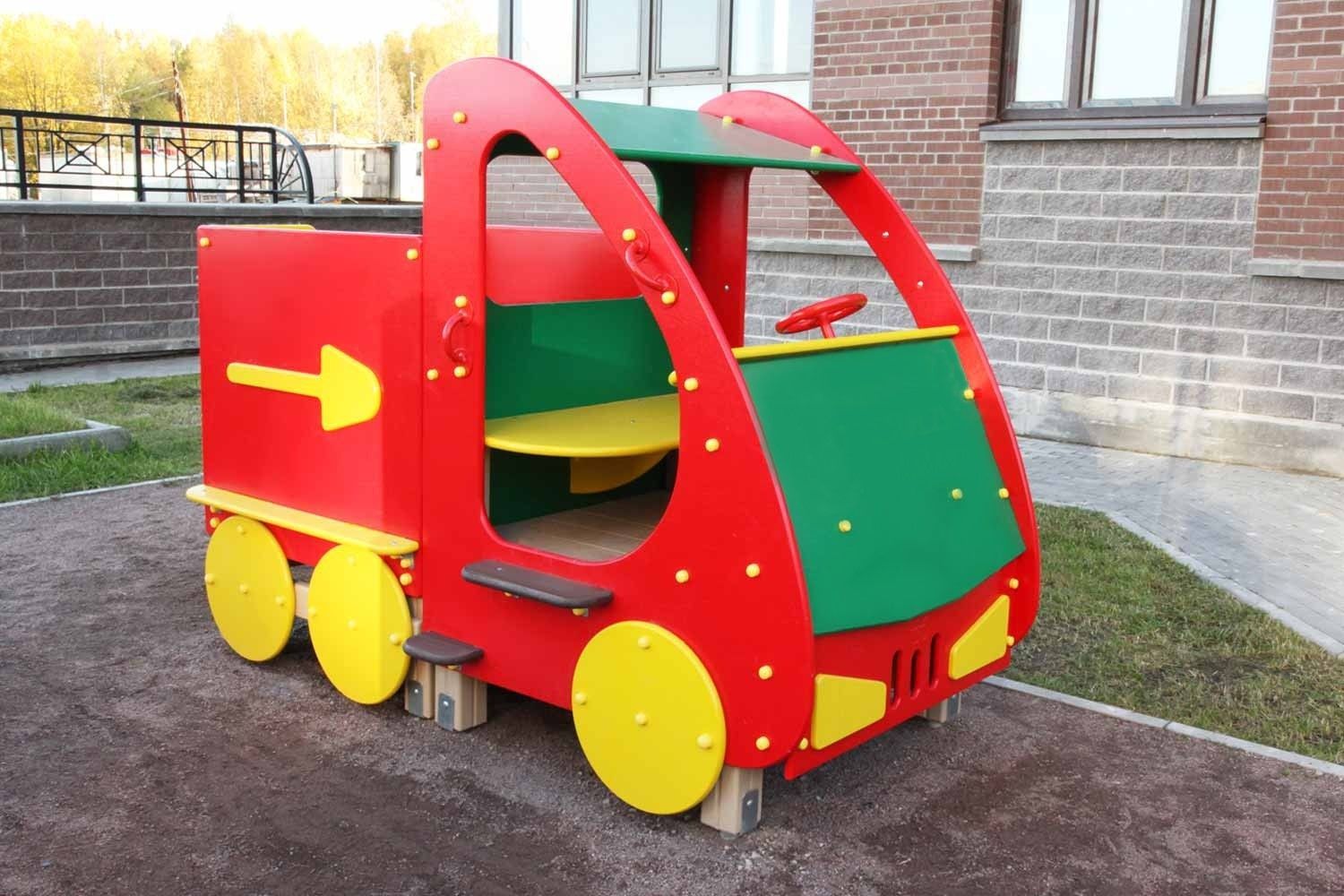 Игровая конструкция состоит из 2-х элементов, которые имитируют кузов машины и кабину: