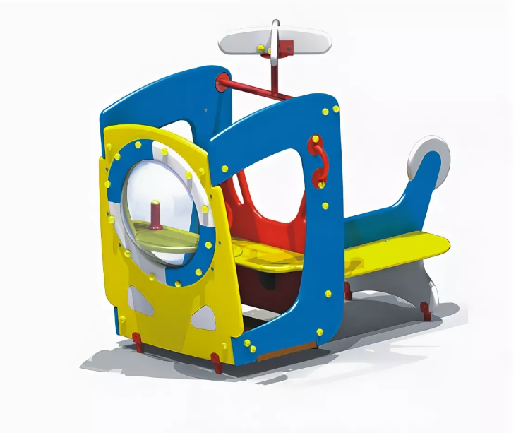 Уличный элемент для ДОУ представляет собой башню в виде кабины вертолета, с пропеллером и хвостовой частью.