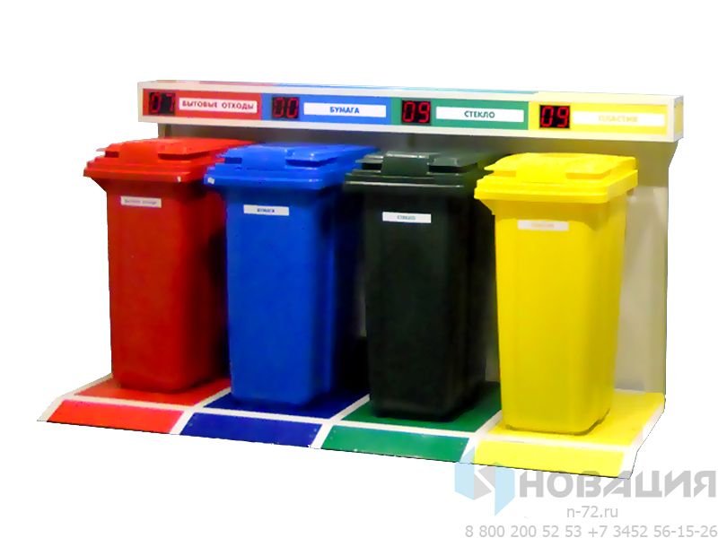 Площадка-распределитель со стойкой индикации применяется во время занятий в ДОУ. Напольная конструкция представлена 4-мя контейнерами, которые стоят на въездном пандусе. Баки с крышками и надписями окрашены в разные цвета, предназначены для 4-х видов мусора. Индикация отображает вес поставленного на площадку контейнера. Занятия, посвященные теме экологии, будут наглядными и запоминающимися благодаря специальному оборудованию.