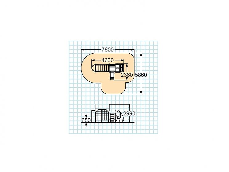 Размер: 4600х2360х2990 мм. Высота площадки 650 мм.