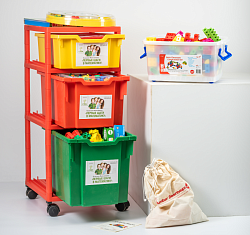 - конструктор (опорные пластины, детали для сборки различных механизмов, элементы для строительства города, фигурки людей);