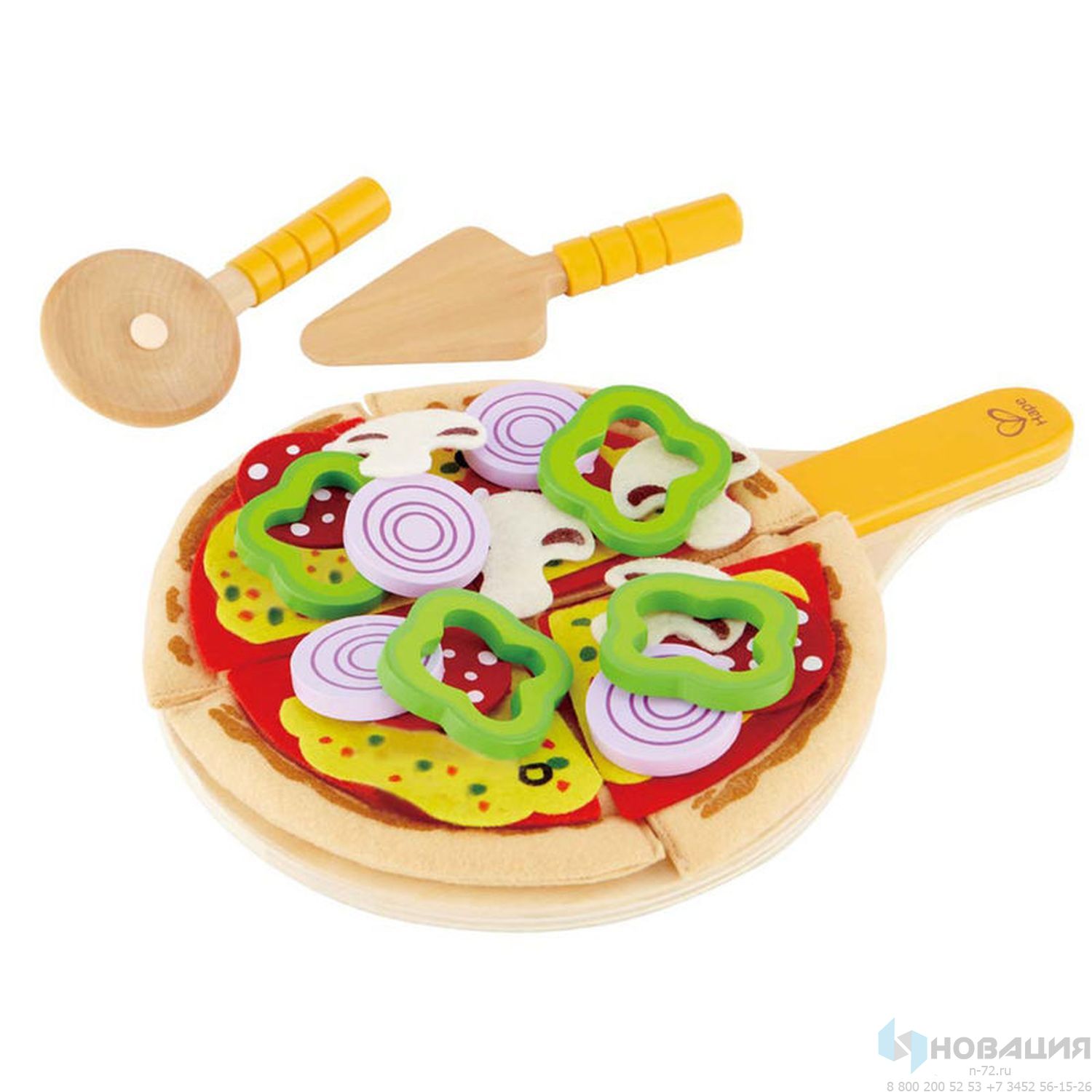 Набор включает в себя 31 элемент: войлочные основу для пиццы и ингредиенты для начинок, а также деревянные кухонные инструменты. В процессе игры дети создают различные комбинации начинок, развивая фантазию и тренируя мелкую моторику.