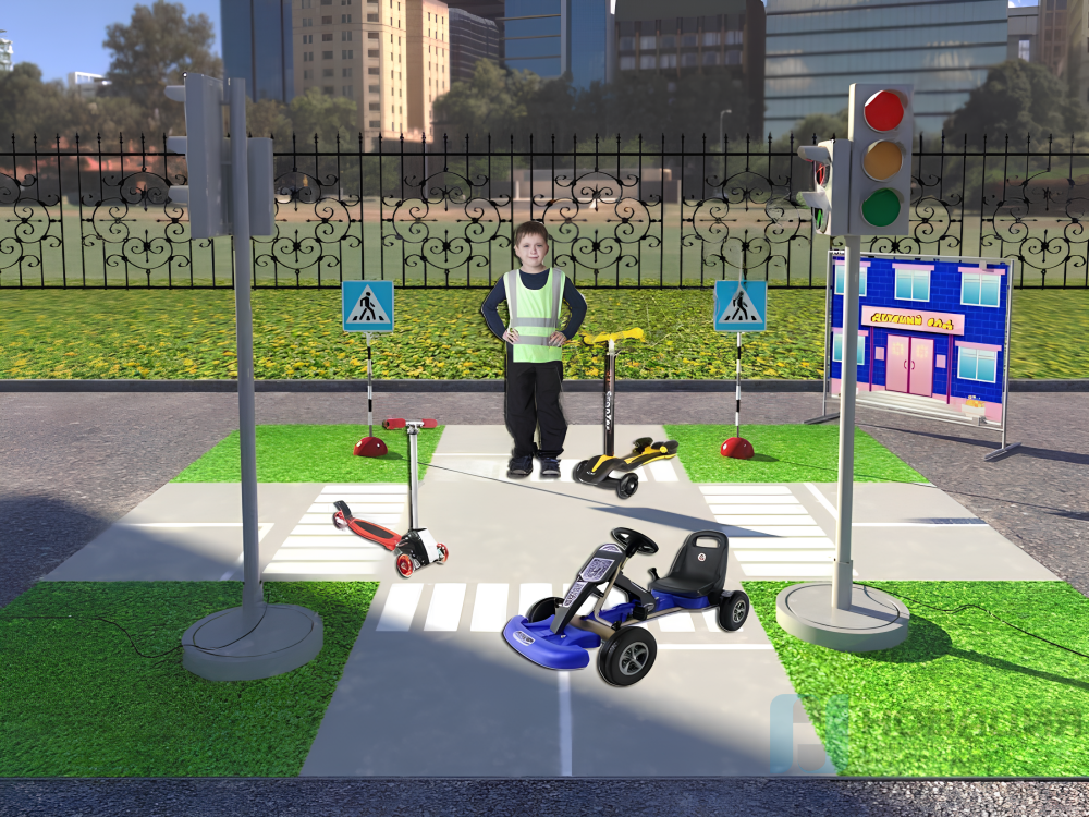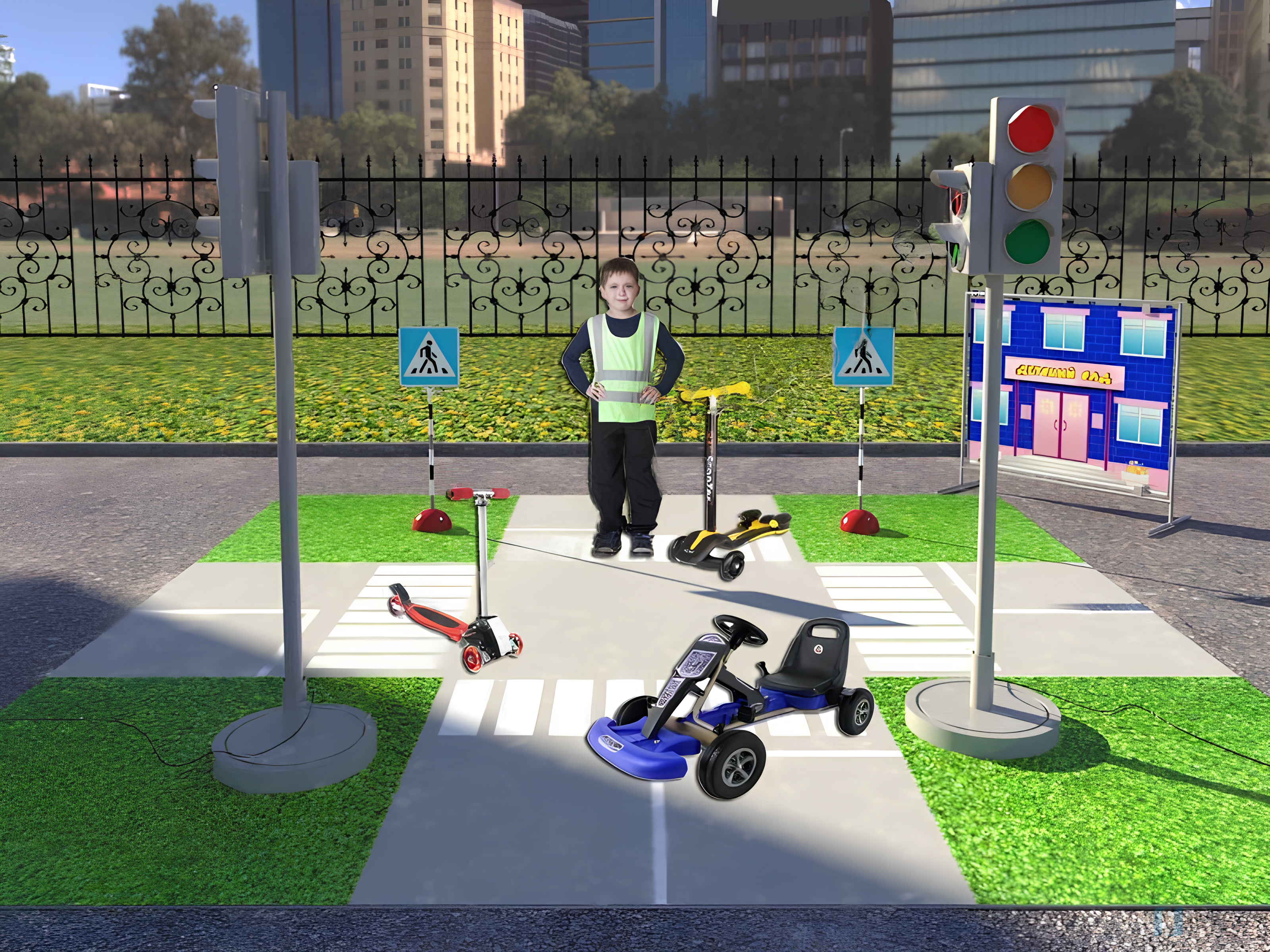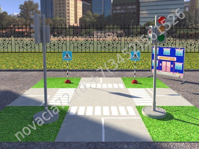 9) Баннерное покрытие на пол 4х4 м с изображением проезжей части, перекрестка.