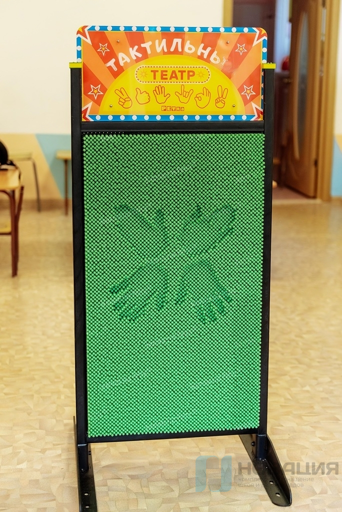 В процессе игры дети надавливают на стержни, которые вытесняются на другую сторону панели. Можно создавать фигурные отпечатки.