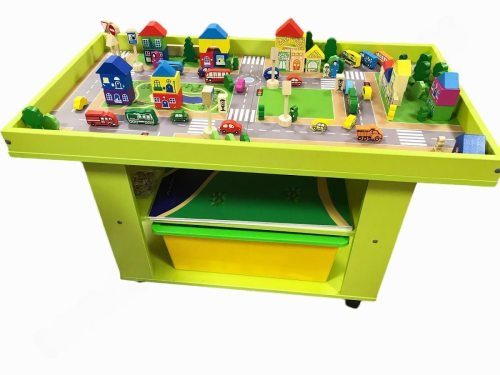 Детский мобильный стол "Ландшафт" - это конструктор "Город большой" и "Ферма" на игровом столе с бортиками.