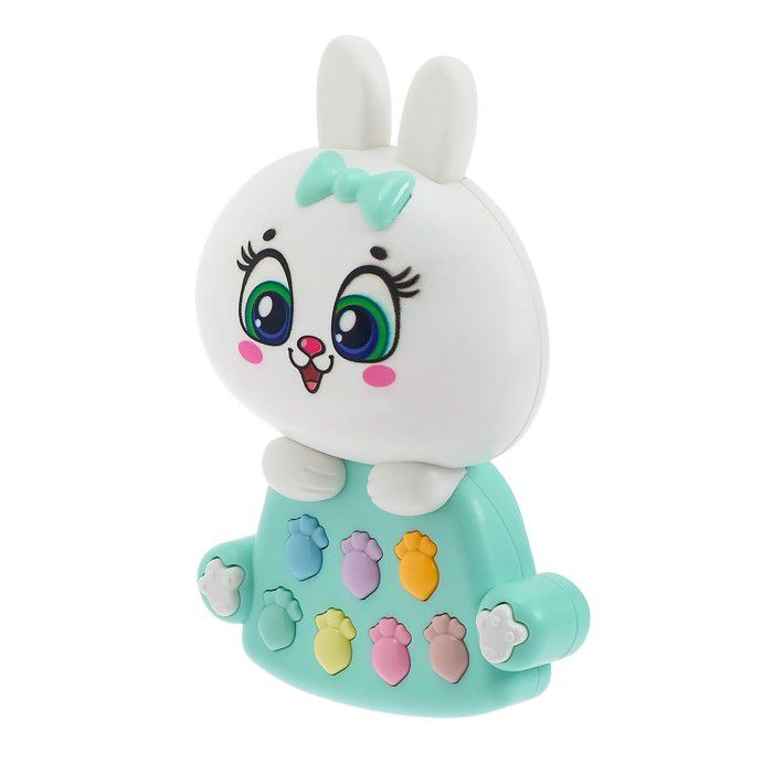 Игрушка в виде зайчонка читает стихи, рассказывает сказки, произносит жизнеутверждающие фразы, исполняет песенку про алфавит. Ребенок научится считать, запоминать формы предметов, цвета. Ушки зайчика подсвечиваются, его можно использовать как ночник.