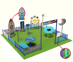 Макеты помогают узнать об устройстве Вселенной и профессии космонавта. Пособие содержит рекомендации по работе с приборами. Площадка подготовлена к смене погодных условий и частой эксплуатации. Поверхности гипоаллергенны, противостоят физическим и химическим воздействиям.