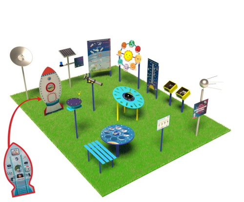 Макеты помогают узнать об устройстве Вселенной и профессии космонавта. Пособие содержит рекомендации по работе с приборами. Площадка подготовлена к смене погодных условий и частой эксплуатации. Поверхности гипоаллергенны, противостоят физическим и химическим воздействиям.