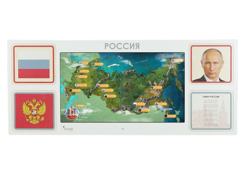 - Интерактивная настенная панель, оформленная основной символикой РФ (диагональ 43 дюйма, Full HD, мультитач 10 касаний);