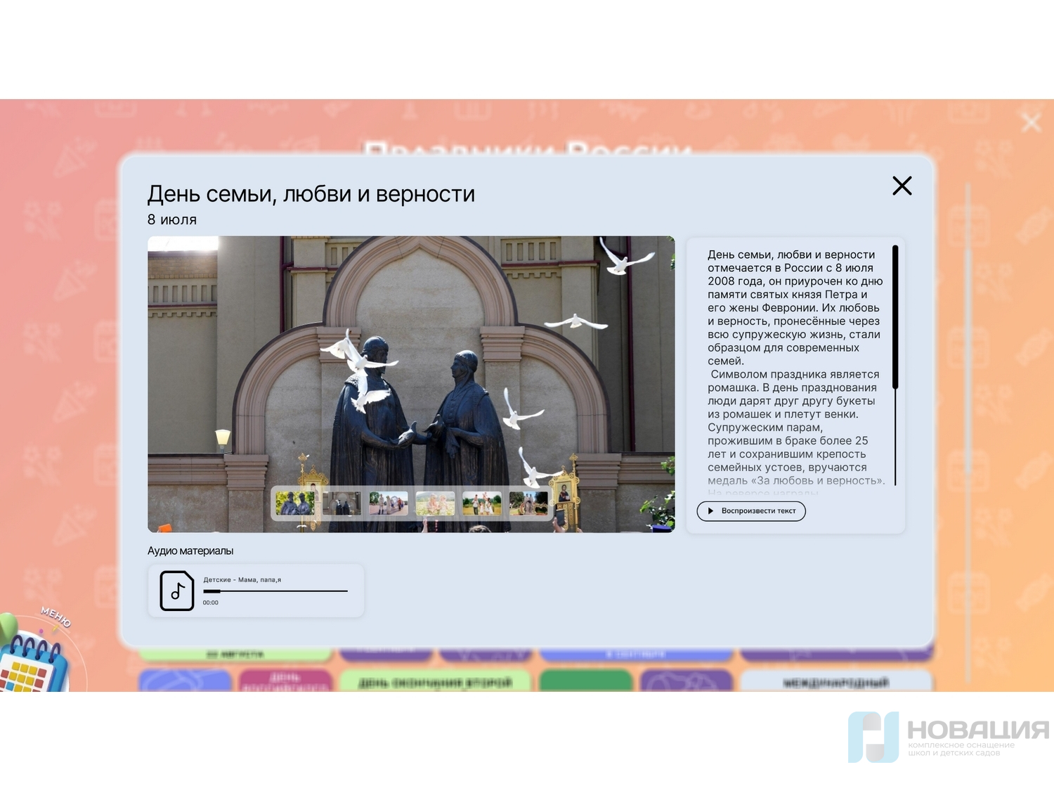 - ПО «Патриот», «Дошкольное образование» (программное обеспечение утверждено перечнем сведений о государственной или муниципальной услуги, реестровая запись №3909), интерактивный квест «5 Островов», интерактивная раскраска «Оживариум».