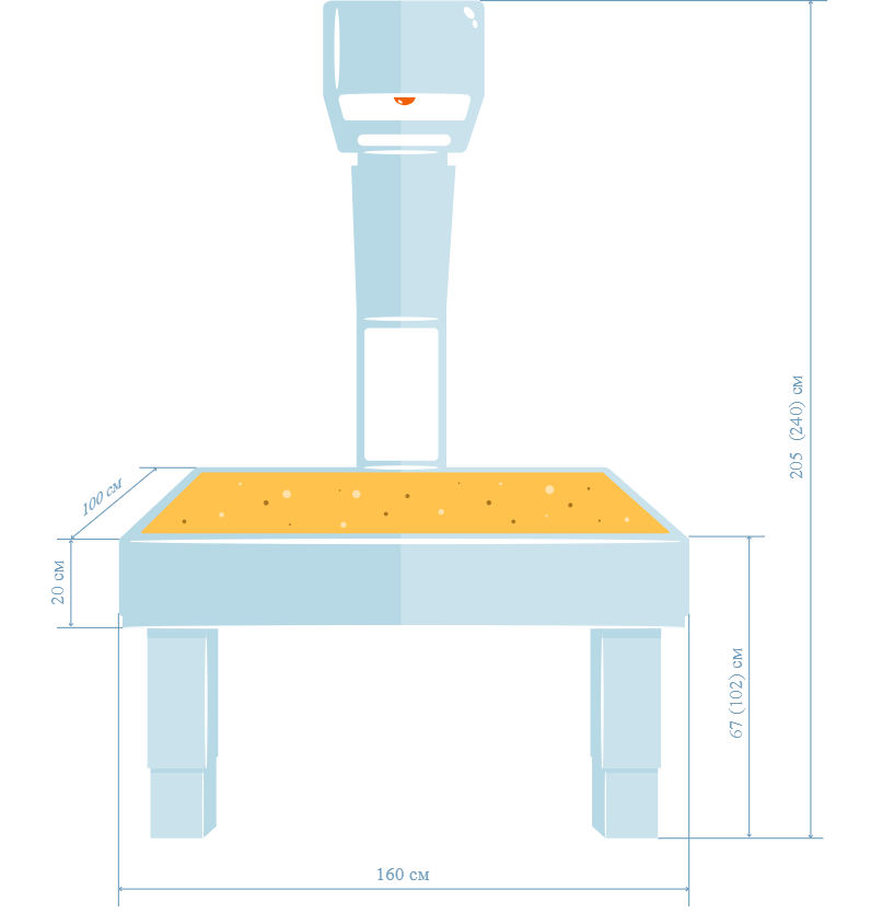 Песочница для коррекционной работы подходит детям с ОВЗ. Высота столешницы изменяется при помощи пульта ДУ. Предусматривается 2-уровневая система защиты от травм. Комплектация: