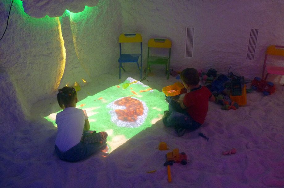 Песочница в герметичном корпусе подходит для соляных комнат. Воспитанники ДОУ (в том числе, дети с ОВЗ) могут совмещать сеансы арт-терапии с дыхательными упражнениями.