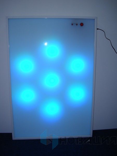 Панель светозвуковая представляет собой экран со светящимися пятнами, которые перемещаются по кругу и меняют свой цвет в зависимости от интенсивности и периодичности шумов.