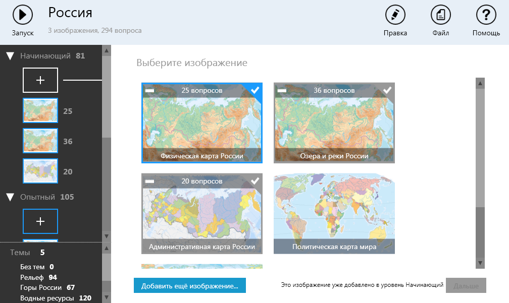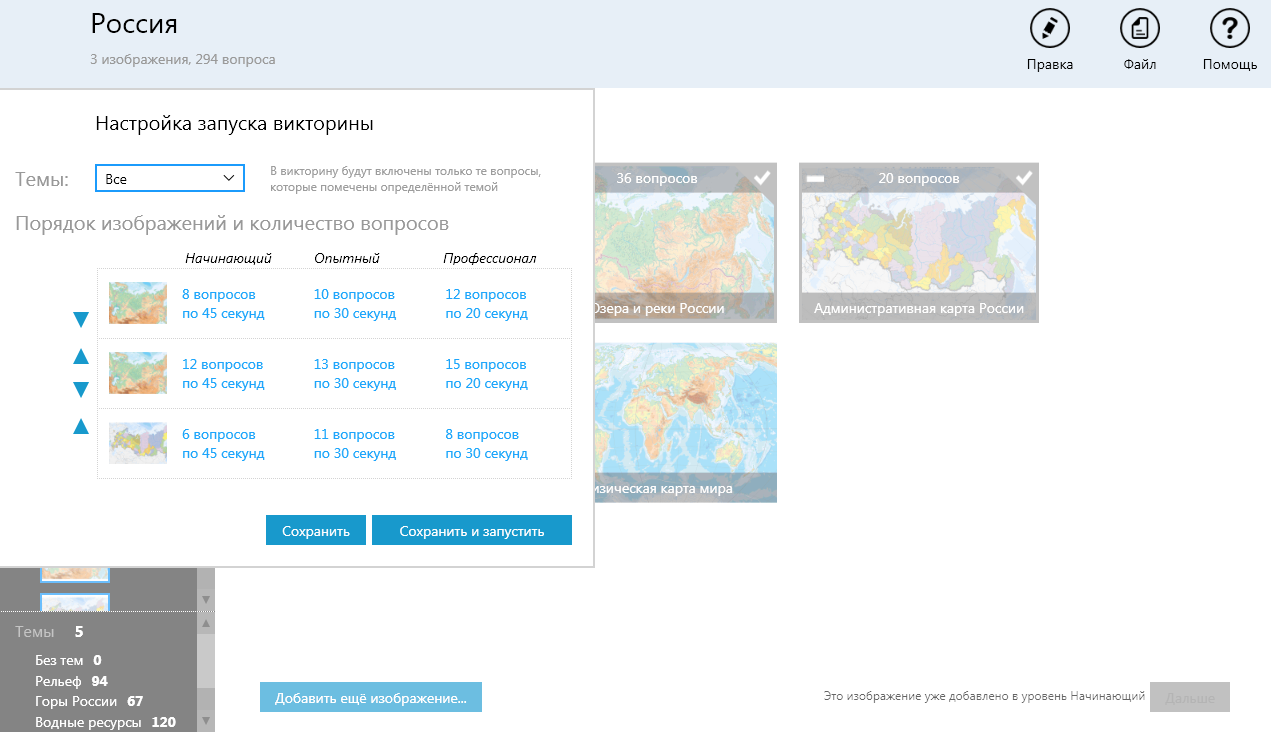 - по желанию педагог исключает из итоговой викторины отдельные уровни сложности и картосхемы.